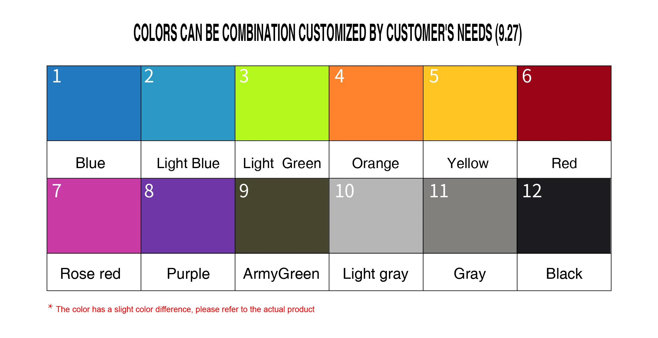 For waders , colors can be combination customized by customer's needs , black, olive green, dark grey, light grey, camo are optional colors.