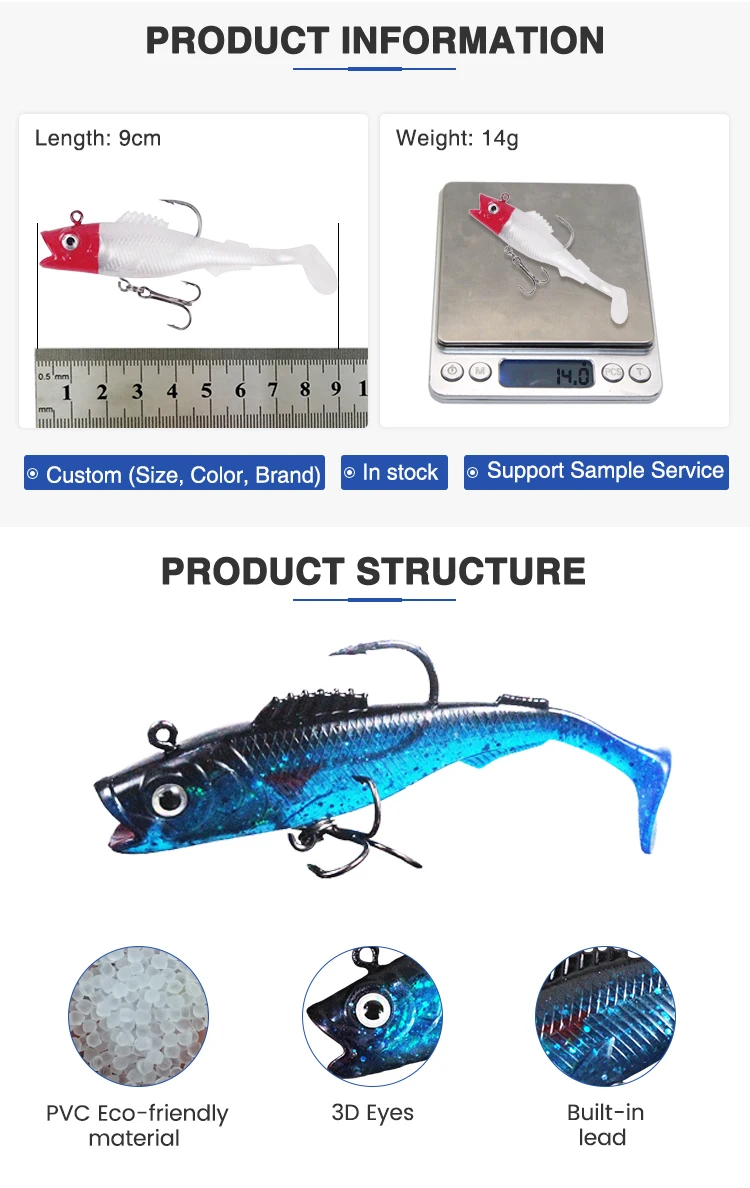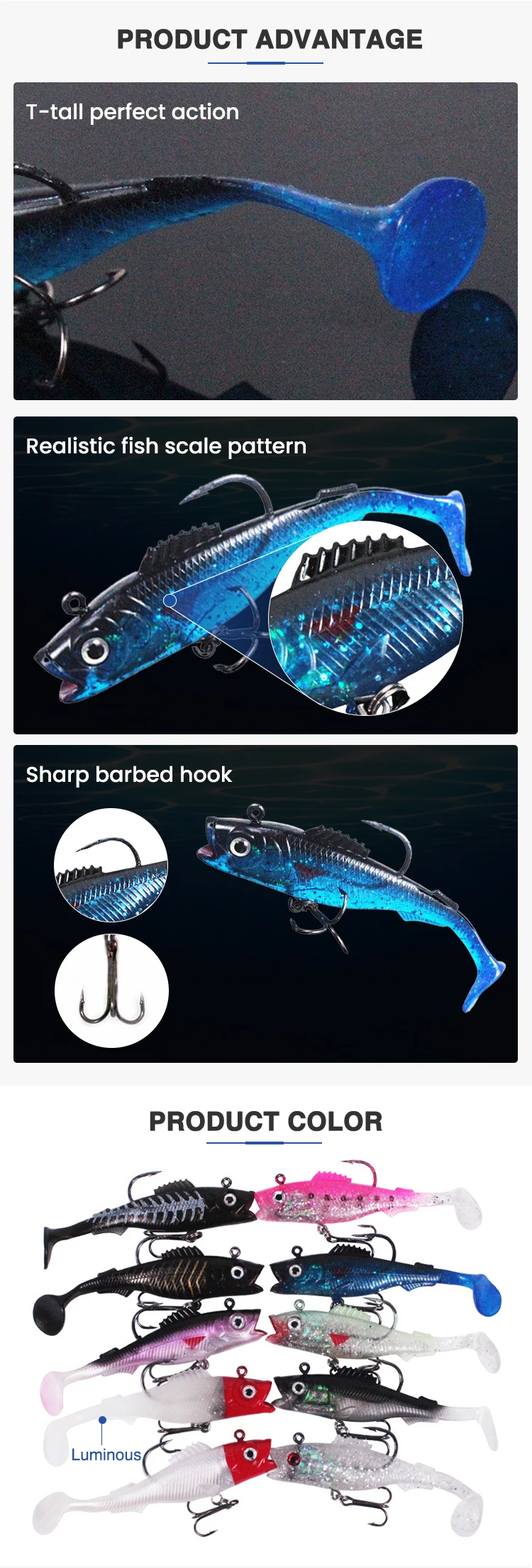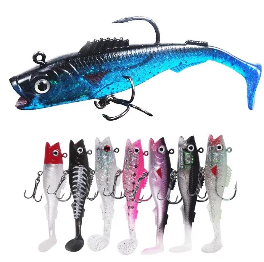 Big mouth 10 color T-tail soft lead bait jig head soft lure for sea freshwater fishing