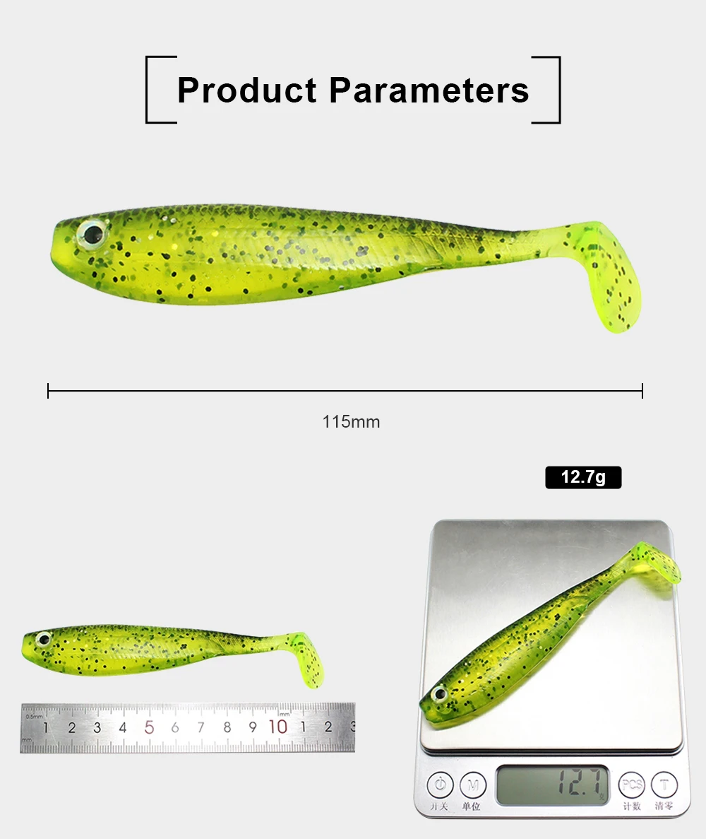 115mm 12.7g Premium PVC soft lure 3D eyes T tail plastic fishing lures